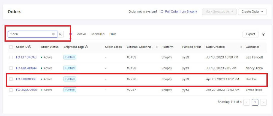 TIP: Do not include the number sign (#) when searching the order number so that the other results that occur in the order appear.