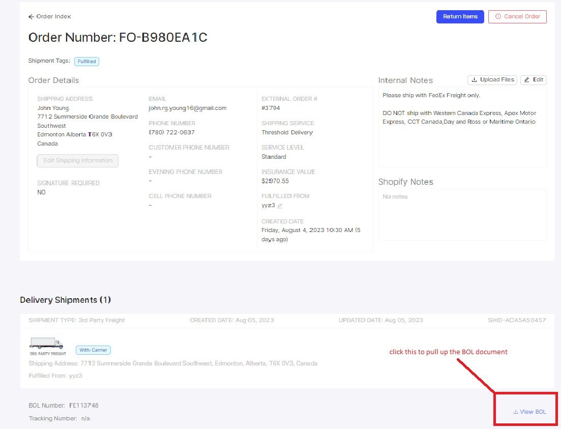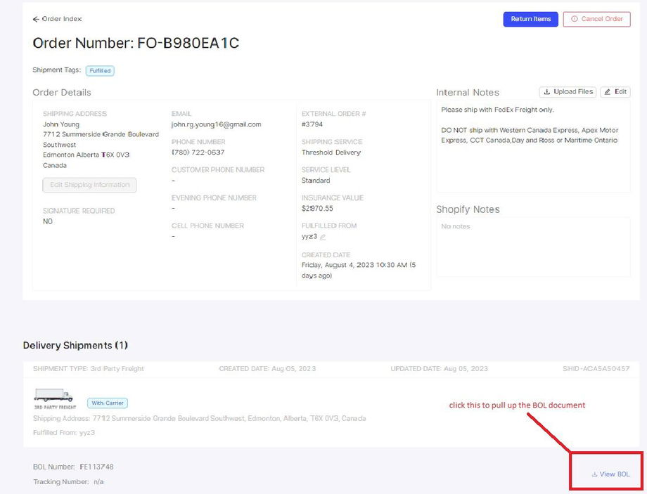 If there is a tracking number in the GoBOLT portal, we can provide it. Refer to the sample above on how to get the tracking number.