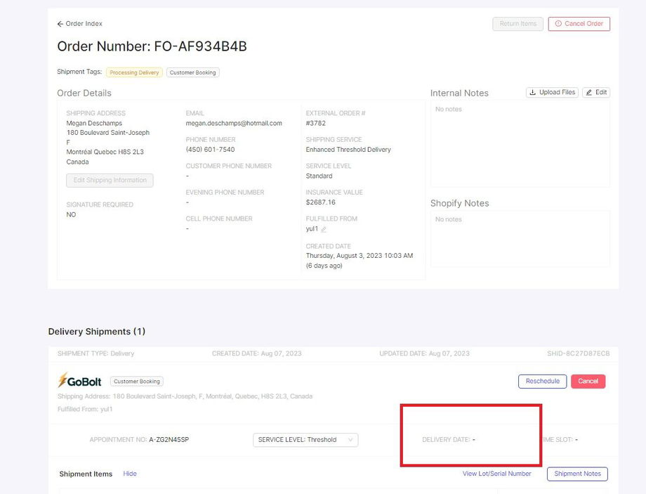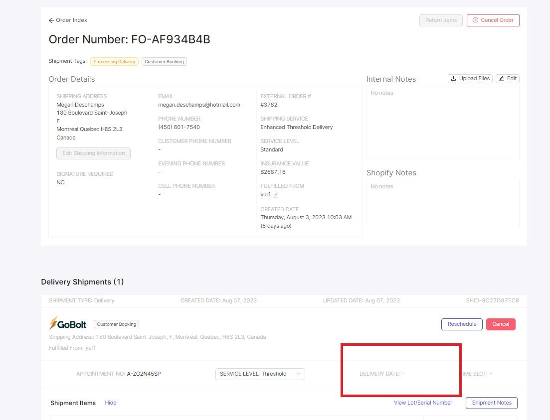 This means we already sent the booking email to the customer email and they haven't scheduled the delivery date. This status only shows orders that are within our standard service area. You may say, “[Caller’s name] Kindly check your email because as per checking we already sent you the booking email where you can schedule your delivery on the day of your choice, as well as your preferred 4 hour delivery window. Email should titled as GoBolt”